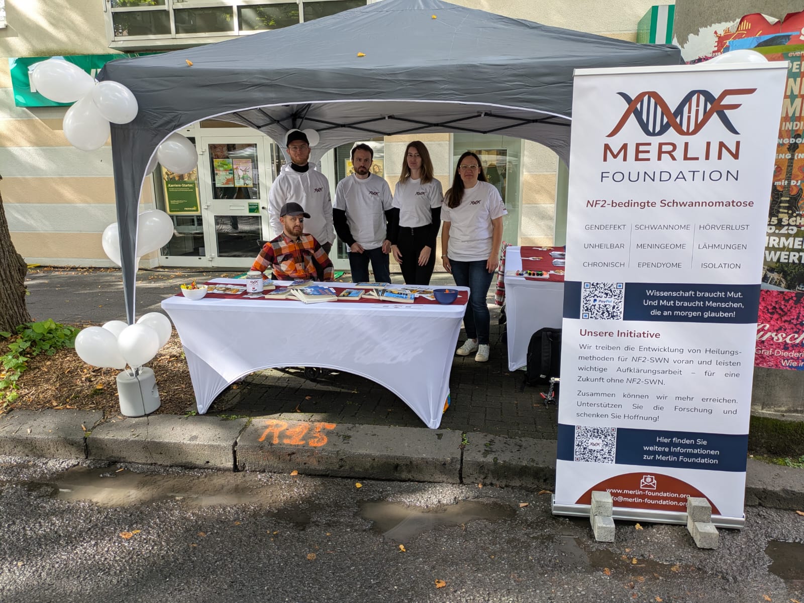 Besonders bemerkenswert waren die Begegnungen mit Menschen, die direkt oder indirekt von seltenen Erkrankungen betroffen sind. Ein Ehepaar mit ihrem kleinen Sohn zeigte großes Interesse, da ihr Kind selbst von bisher unklaren Gendefekten betroffen sei. Auch ein Mann, der ein Mädchen mit Behinderung über das Fest schob, erkundigte sich nach unserer Arbeit. Er wollte wissen, woher der Name „Merlin Foundation“ stammt und welche Ziele wir verfolgen.